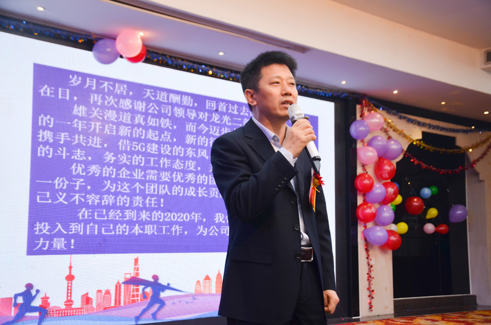 尾牙宴上,龙光一部总监晁瑞刚发表讲话。晁总说:“成功伴着艰辛、收获伴着汗水,龙光一部在2019年新建10条装配产线,产能扩充了一倍,并取消了夜班,为龙光一部订单不断增长提供了保障。2020年我希望和大家同心携手,再创新辉煌,让龙光一部的销售产值更上一层楼!”